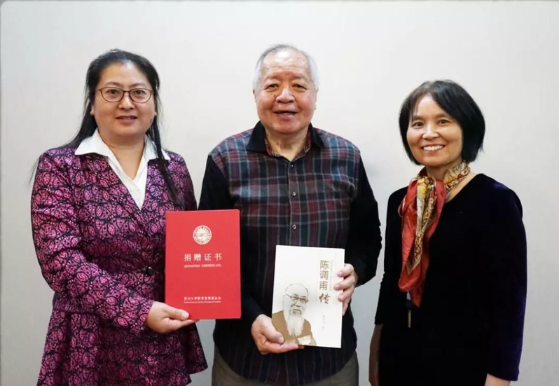 校长办公室副主任陈美代表学校向陈中平先生颁发了捐赠证书,档案馆馆长石明芳致答谢词。在场师生与陈中平先生充分交流,活动氛围温馨而热烈。大家表示,陈调甫校友从在东吴大学求学开始,打下了坚实的基础,对化学事业始于热爱、专于选择,他在实业兴国的历程中所坚持的主张和爱国行动对当代青年学子及广大苏大人都是“鲜活”的思想引领。