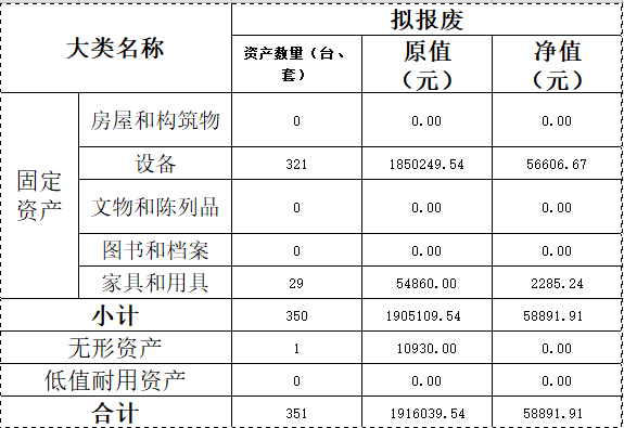 经必威BETWAY西汉姆联党政联席会议讨论决定,根据2025上半年资产清查盘点结果,同意下列资产申请报废处置。特此公示:
