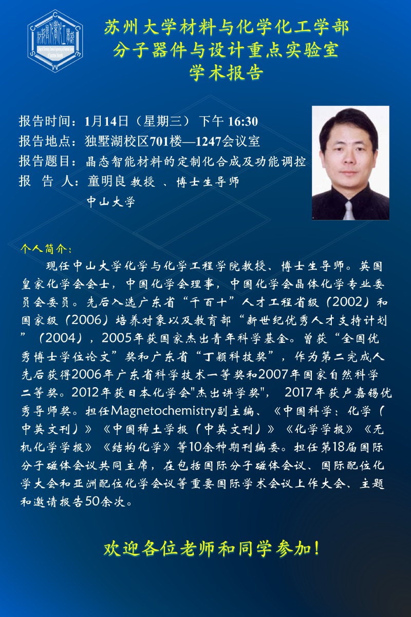 晶态智能材料的定制化合成及功能调控